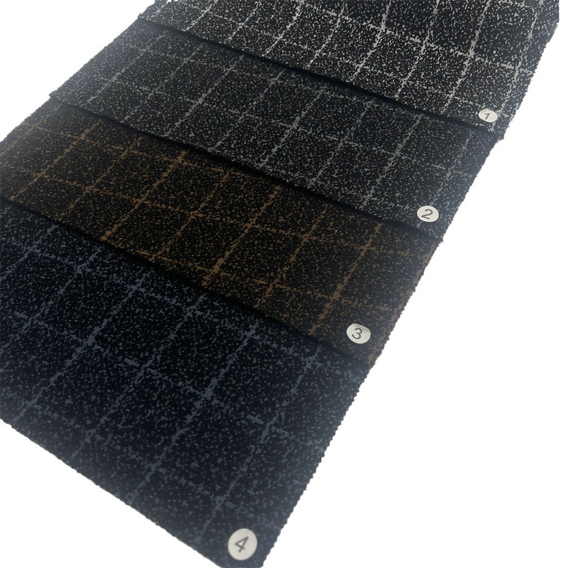 Deze stof, artikel 182808-1, is een gebreide stof die is ontworpen voor de productie van blazers. Het is gemaakt van een vezelmix van 65% polyester, 27% nylon, 6% acryl en 2% wol, met een massa per oppervlakte-eenheid van 820 g/m2. Het oppervlak integreert een gecombineerd ruit- en stippenpatroon dat tijdens het breiproces wordt gevormd. Deze specifieke vezelsamenstelling zorgt voor complementaire eigenschappen: het polyester zorgt voor structurele stabiliteit, het nylon verbetert de duurzaamheid, het acryl draagt bij aan de loft en de wol beïnvloedt het handgevoel van de stof. Het aanzienlijke gewicht en de gebreide constructie dragen bij aan de drapeer- en isolatie-eigenschappen van de stof, waardoor deze toepasbaar is voor gestructureerde kledingstukken zoals blazers.