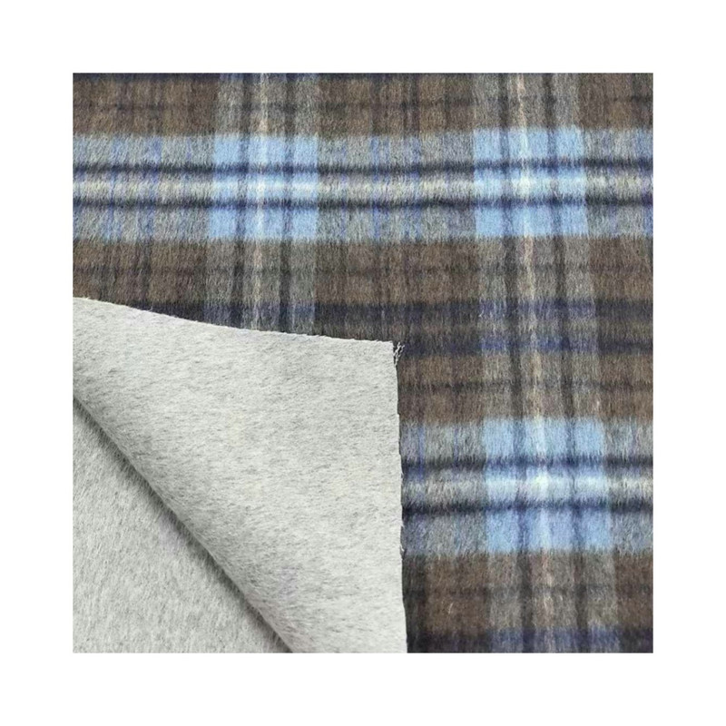 Deze stof, aangeduid als artikel ZZH25003, is een zwaar geweven textiel bestaande uit 50% wol en 50% andere vezels. Met een massa per oppervlakte-eenheid van 950 g/m² vertoont het materiaal een aanzienlijke dichtheid en gewicht. Het oppervlak heeft een geruit patroon dat blauwe en bruine tinten combineert in een gestructureerde rasterformatie. Deze gewichtscategorie draagt bij aan de windweerstand en het isolatievermogen van de stof. De samenstelling van het wolmengsel beïnvloedt de thermische regulerende eigenschappen van het textiel. Deze technische specificaties maken deze geweven stof toepasbaar voor winterjassen waar substantiële bescherming tegen koude weersomstandigheden vereist is.