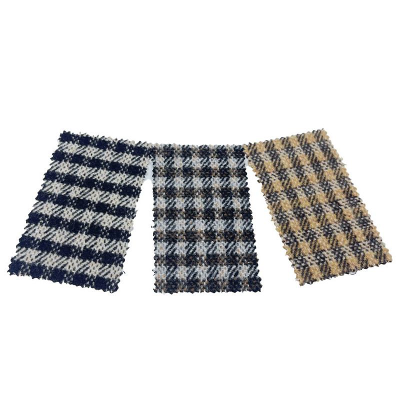 Deze stof, aangeduid als artikel 3811, is een tweedtextiel samengesteld uit 10% wol en 90% andere vezels. Met een massa per oppervlakte-eenheid van 550 g/m² is het een zware constructie. Het bruine oppervlak is voorzien van een ruitpatroon geïntegreerd in een twill geweven basis, waardoor diagonale lijnen onder de rasterformatie ontstaan. Er is een geborstelde afwerking op de stof aangebracht, waardoor de vezels omhoog komen en een zachtere oppervlaktetextuur ontstaat. Deze techniek verandert de tasteigenschappen van de stof, terwijl de structurele integriteit van het keperweefsel behouden blijft. De technische specificaties resulteren in een materiaal met een gecombineerde visuele patroondefinitie en een verbeterd handgevoel, waardoor het toepasbaar is voor de productie van jassen waar zowel duurzaamheid als tactiel comfort vereist zijn.