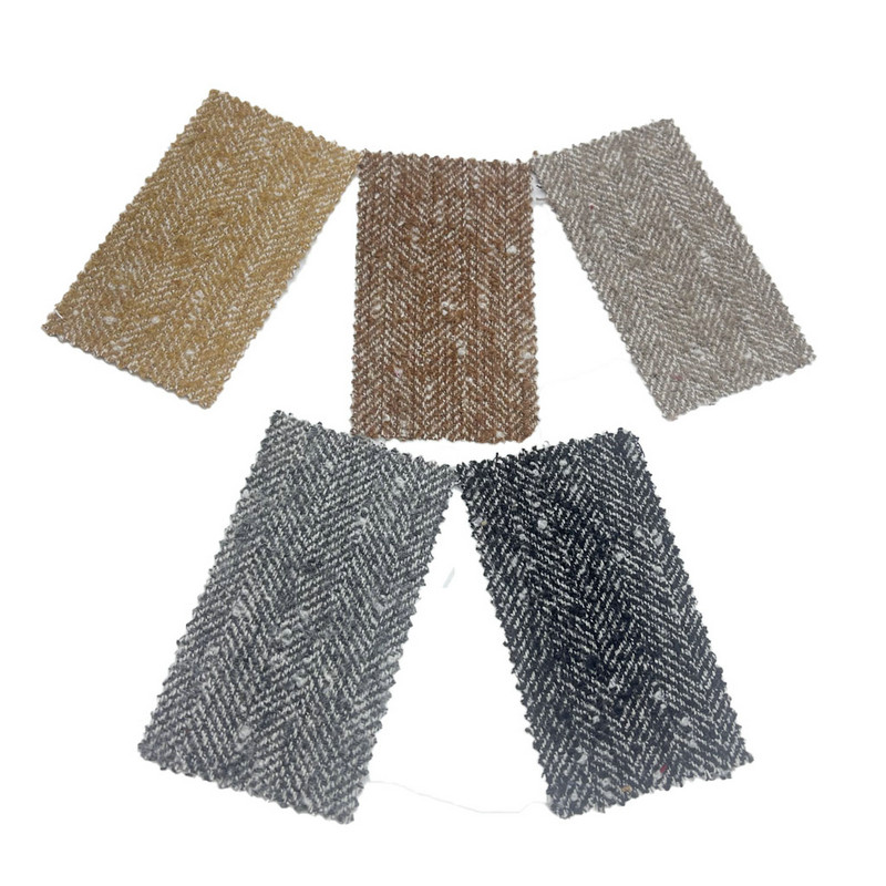 Deze stof, aangeduid als artikel 3906, is een tweedtextiel samengesteld uit 30% wol en 70% andere vezels. Met een massa per oppervlakte-eenheid van 620 g/m² is het een zware constructie. Het grijze en witte oppervlak combineert een visgraatpatroon met een bubbeltextuur, waardoor een samengesteld effect ontstaat door middel van gespecialiseerde weeftechnieken. Deze methode produceert zowel de karakteristieke V-vormige motieven als gelokaliseerde verhoogde gebieden over de stof. De samenstelling van het wolmengsel draagt bij aan de thermische isolatie-eigenschappen en structurele veerkracht van de stof. Deze technische kenmerken resulteren in een materiaal met verbeterde driedimensionale textuur en aanzienlijke dichtheid, waardoor het toepasbaar is voor winterkleding waar verhoogde warmte en oppervlakteinteresse vereist zijn.