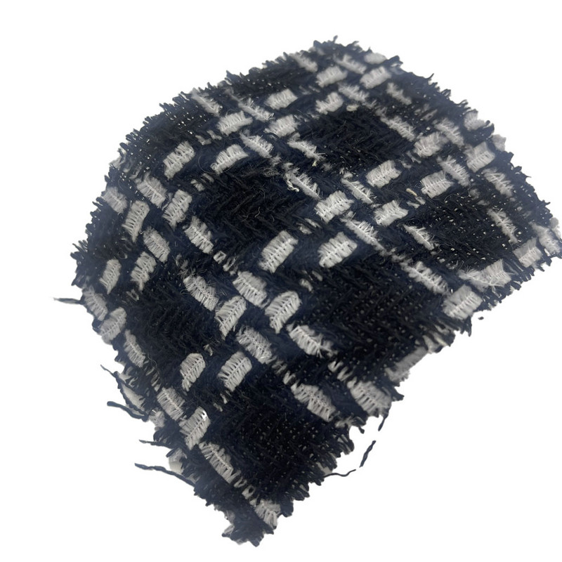 Deze stof, aangeduid als artikel 23545, is een geweven tweedtextiel samengesteld uit 39% polyester, 36% wol en 25% katoen. Met een massa per oppervlakte-eenheid van 255 g/m² heeft het een lichtgewicht constructie. De stof heeft een zwart geruit patroon dat door het weefproces is ontstaan en een gestructureerd raster op het oppervlak vormt. De mix van polyester, wol en katoen combineert de maatvastheid van synthetische vezels met de natuurlijke vochtregulatie van cellulose- en eiwitvezels. Deze samenstelling resulteert in een stof met een uitgebalanceerde duurzaamheid en ademend vermogen. Deze technische specificaties maken deze geweven tweed toepasbaar voor diverse kledingtoepassingen waarbij patroondefinitie en draagcomfort vereist zijn.